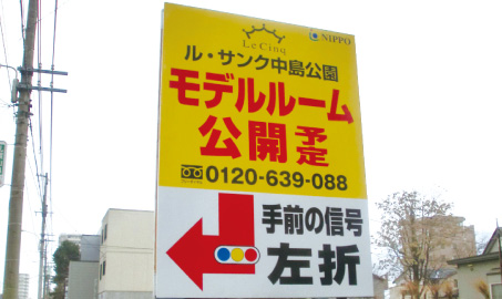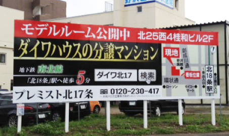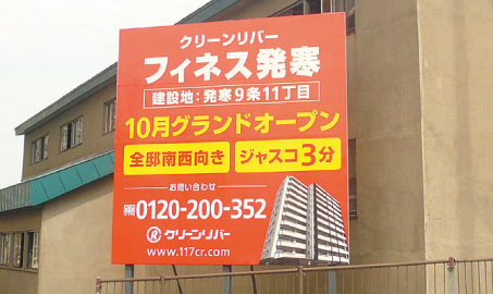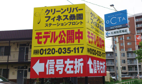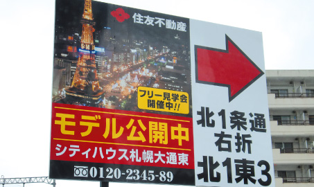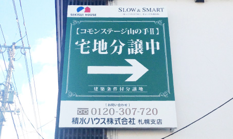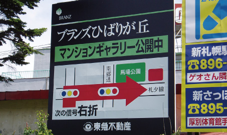 弊社が最も得意とする分野の1つが不動産の看板です。特定のエリアに周知するための看板、道案内をする誘導看板など、場所や目的によってデザインや素材、施工方法は変わってきます。