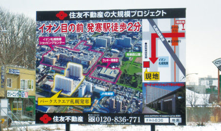 また看板だけでなく、印刷広告物やノベルティ制作、そして各メディア掲載等と合わせてご提案することも可能です。参考までに、不動産看板の施工・実績をご覧ください。