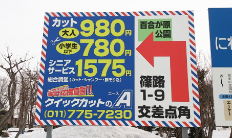 広告としての看板、道案内をする誘導看板など、場所や目的によってもデザインや素材、施工方法が変わってきます。